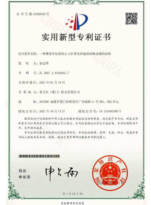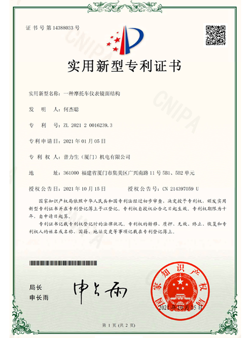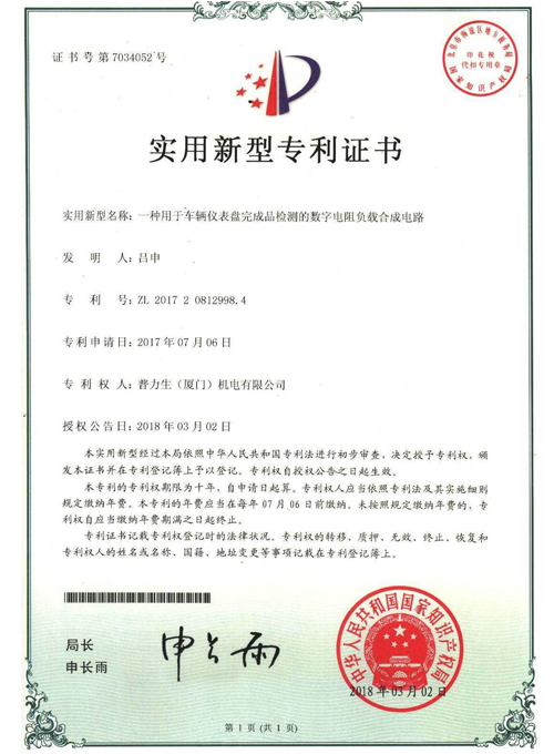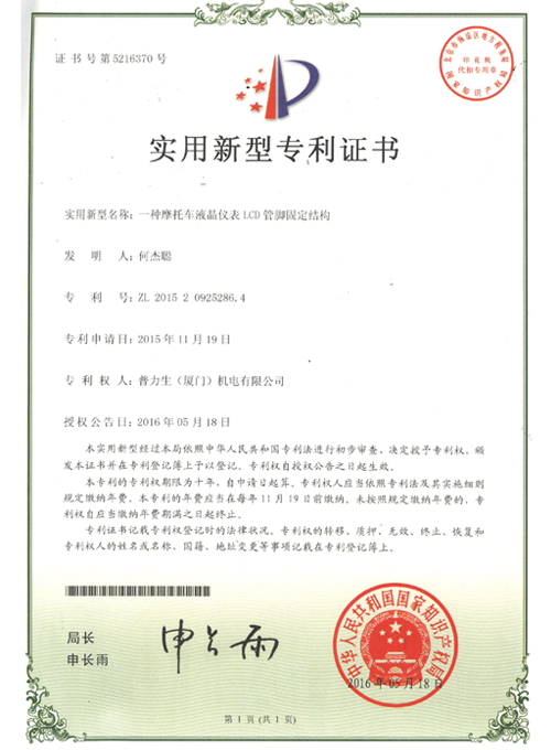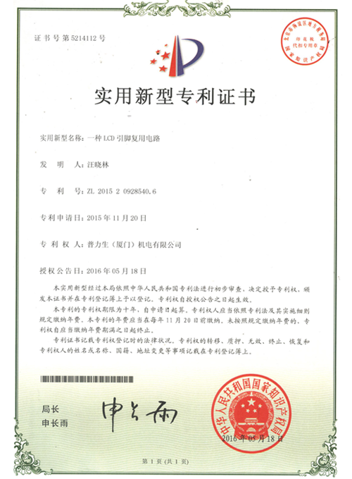 实用新型专利证书