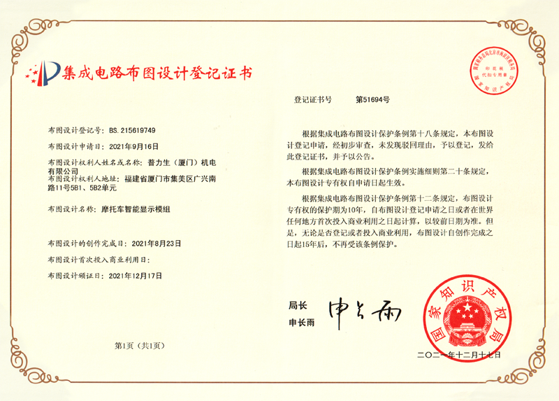 集成电路布图设计登记证书